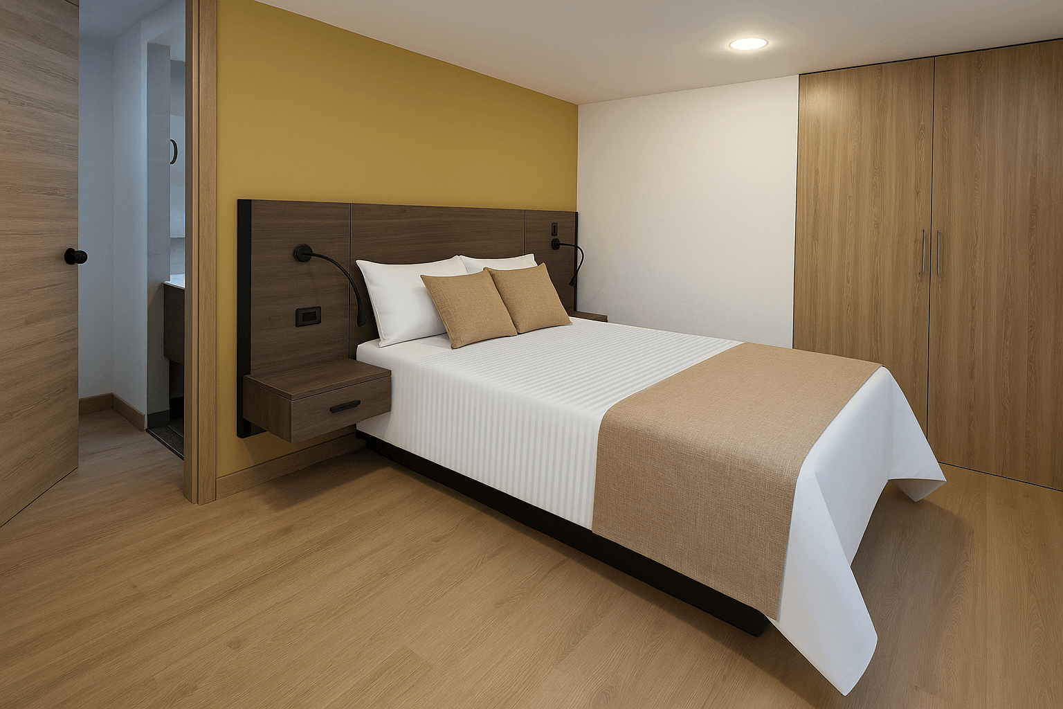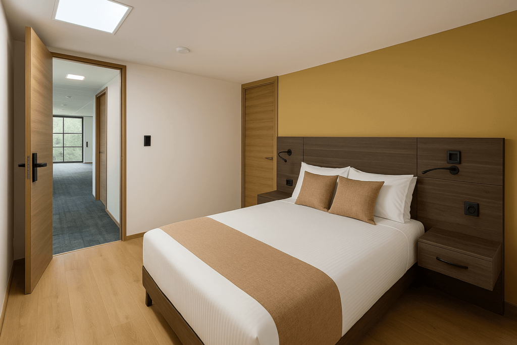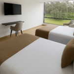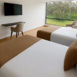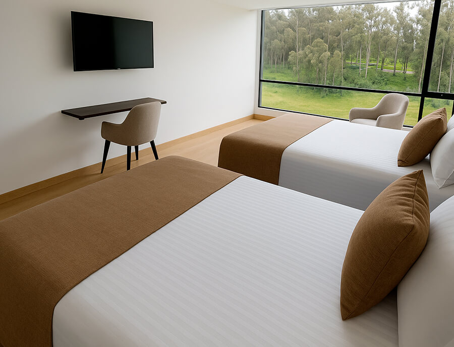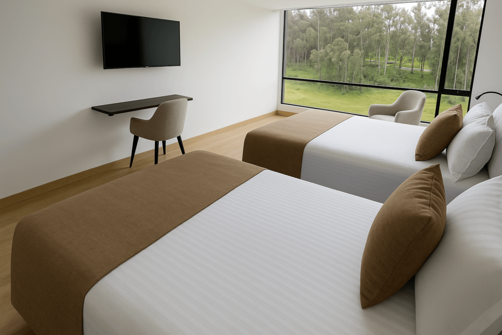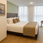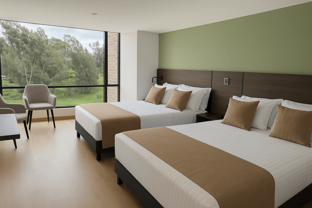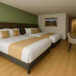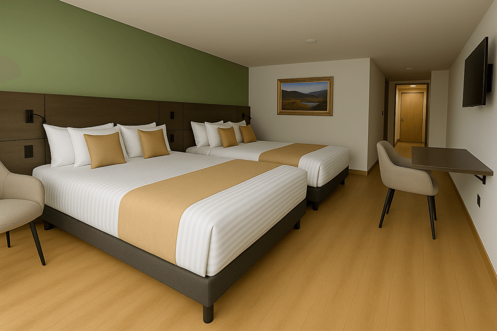 Diseñada para el confort y funcionalidad. Cuenta con una cama doble, sofacama, baño privado, mesa de trabajo y minibar. Ideal para quienes buscan comodidad en un espacio moderno y acogedor.