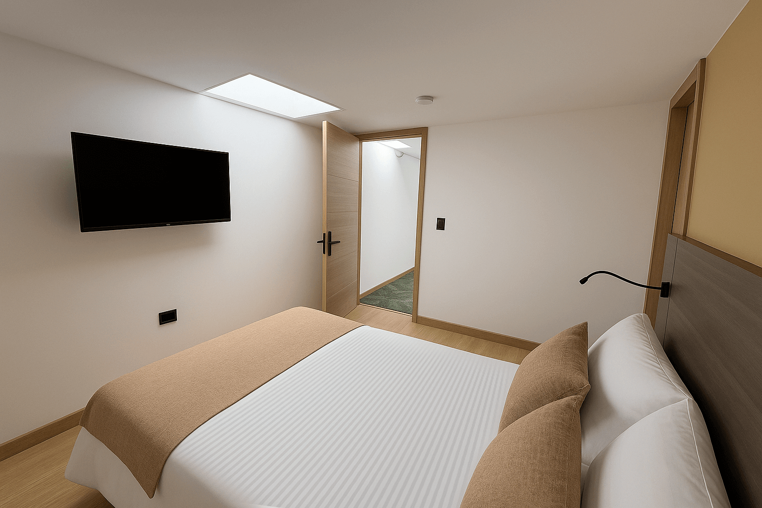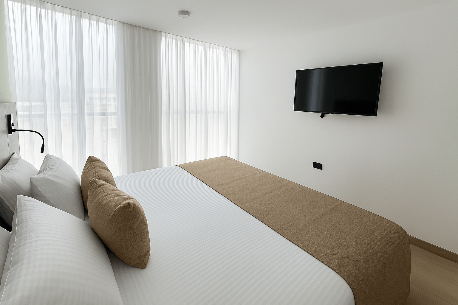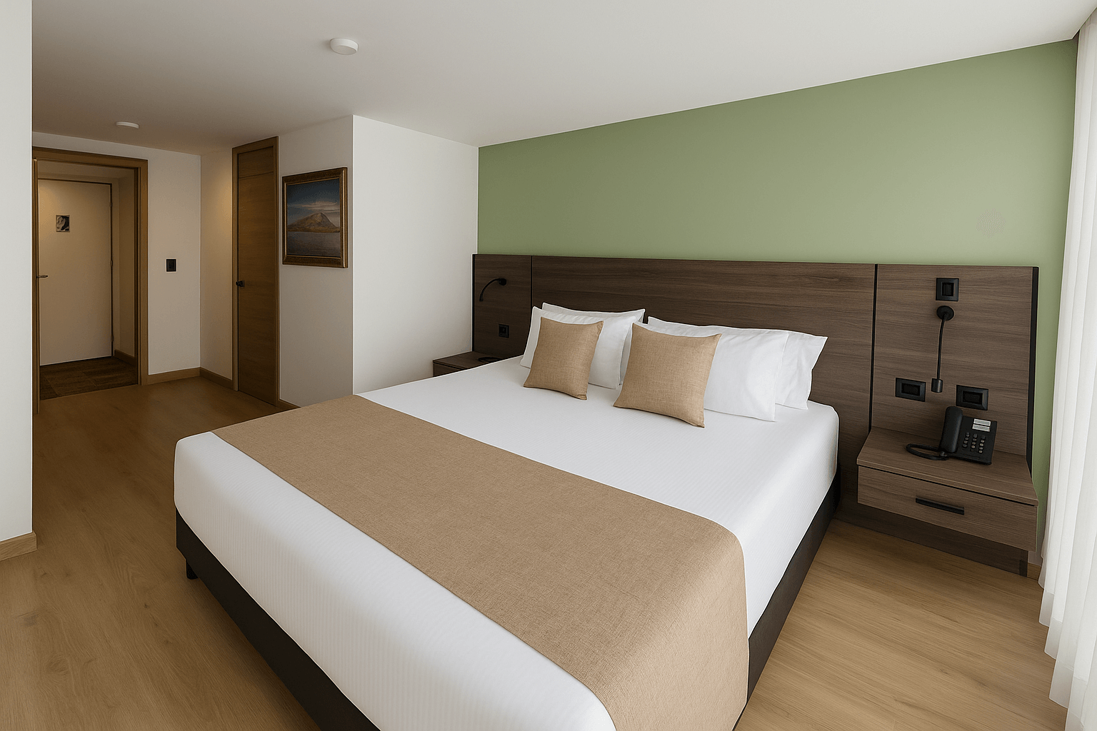 Diseñada para el confort y funcionalidad. Cuenta con una cama doble, sofacama, baño privado, mesa de trabajo y minibar. Ideal para quienes buscan comodidad en un espacio moderno y acogedor.